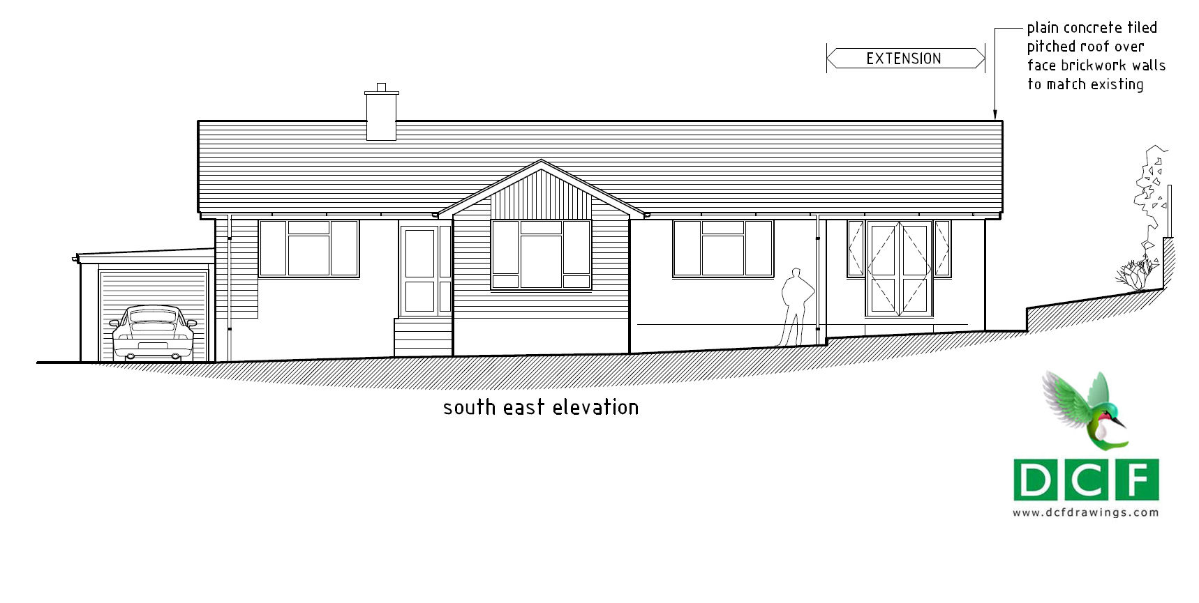 DCF Planning and Design were engaged to draw up a simple five metre bungalow extension, for planning permission, building regulations and construction. Our design follows the existing construction lines and uses sympathetic materials and finishes.